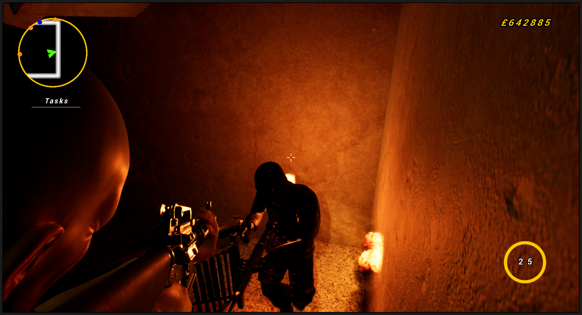 North Bank is a Third Person Shooter game, with the objective of escaping the police. The game is set in the fictional city of North Bank, with the player starting in North Bank's Bank. To escape successfully, make it to the Metro with the goods, and stop by the restaurant on the way for an additional reward.